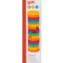 Her får du 51 farvede træ klodser (Hver klods måler 5 x 2,5 x 1,5 cm. Tårnet er 17 cm højt og 5 cm bredt.