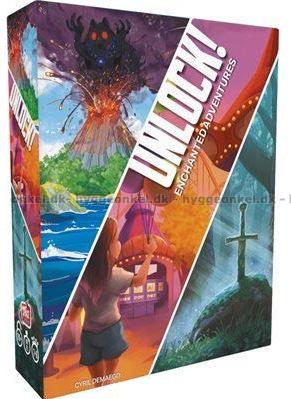 Unlock! er et kooperativt kortspil inspireret af Escape Rooms, der bruger et simpelt system, som lader jer gennemsøge lokationer, kombinere genstande og løse gåder. Spil Unlock! for at drage på fantastiske eventyr, mens I sidder ved at bord, og det eneste, I skal bruge, er kortene og en app, der kan give jer hints, tjekke koder og holde styr på jeres tid.