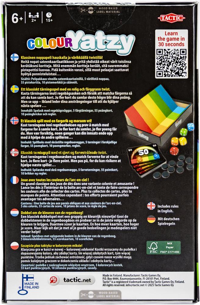 Yatzy: Colour er en farverig fortolkning af det klassiske terningespil, hvor velkendte Yatzy-elementer får nyt liv. Spillet udspiller sig i en særlig regnbueæske, hvor farverne spiller en central rolle og gør hver tur både spændende og uforudsigelig. Når terningerne kastes, opstår der små øjeblikke af håb og forventning, mens man forsøger at skabe de kombinationer, der giver adgang til værdifulde pointkort.